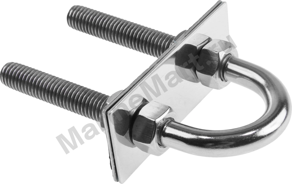 Рым-болт U-образный с крепежными пластинами. Применяется для крепления цепей, тросов, веревок, а также для подъема грузов во время такелажных работ. Диаметр сечения: 13 Длина общая: 127 Длина резьбы: 89 Ключ: 19 Марка стали: AISI 304 Материал: Нержавеющая сталь Производитель: Youthful Резьба: 1/2" Страна производителя: Тайвань Толщина переборки макс.: 61 Ширина внутренняя: 38
