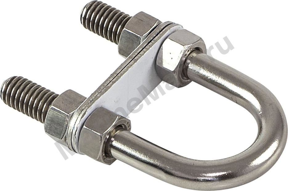 Рым-болт U-образный с крепежными пластинами. Применяется для крепления цепей, тросов, веревок, а также для подъема грузов во время такелажных работ. Диаметр сечения: 9,5 Длина общая: 76 Длина резьбы: 38 Ключ: 14 Марка стали: AISI 304 Материал: Нержавеющая сталь Производитель: Youthful Резьба: 3/8" Страна производителя: Тайвань Толщина переборки макс.: 20 Ширина внутренняя: 26