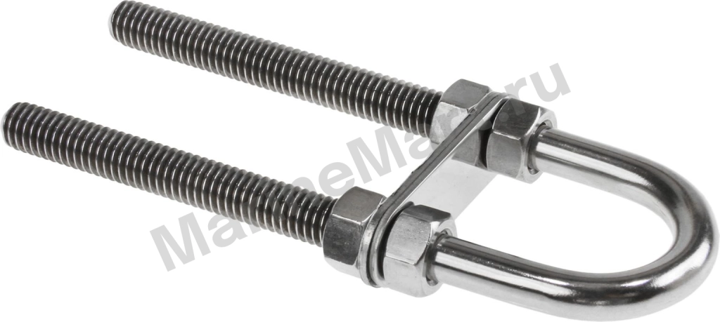 Рым-болт U-образный применяется для крепления цепей, тросов, веревок. Предназначен для подъема грузов во время такелажных работ. Диаметр сечения: 9,5 Длина общая: 127 Длина резьбы: 89 Ключ: 14 Марка стали: AISI 304 Материал: Нержавеющая сталь Производитель: Youthful Резьба: 3/8" Страна производителя: Тайвань Толщина переборки макс.: 66 Ширина внутренняя: 26