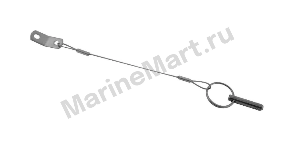 Палец стопорный с тросиком. Длина тросика 152 мм. Диаметр: 6 Длина общая: 34 Материал: Нержавеющая сталь Производитель: Kofuku Размеры: 38х30х10 Страна производителя: Тайвань