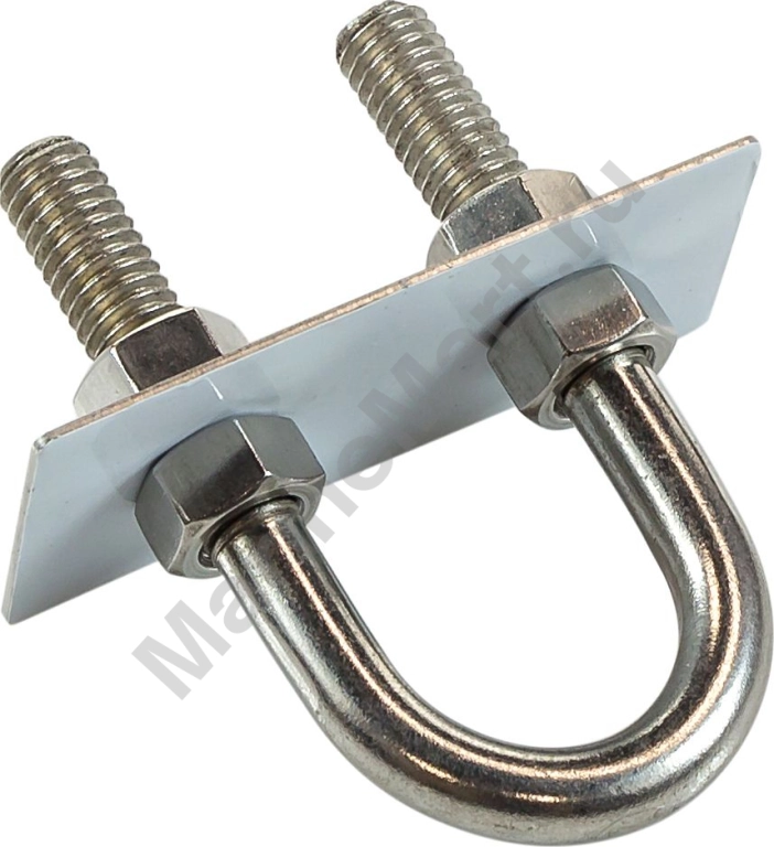 Рым-болт U-образный с крепежными пластинами. Применяется для крепления цепей, тросов, веревок, а также для подъема грузов во время такелажных работ. Диаметр сечения: 9,5 Длина общая: 76 Длина резьбы: 38 Ключ: 14 Марка стали: AISI 304 Материал: Нержавеющая сталь Производитель: Youthful Резьба: 3/8" Страна производителя: Тайвань Толщина переборки макс.: 16 Ширина внутренняя: 26