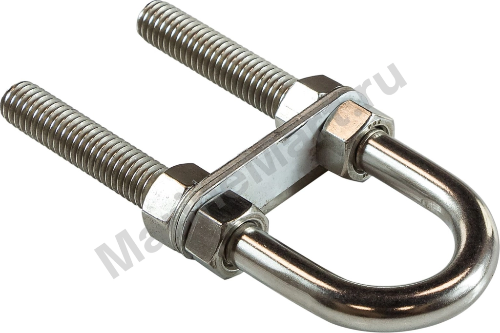 Рым-болт U-образный с крепежными пластинами. Применяется для крепления цепей, тросов, веревок, а также для подъема грузов во время такелажных работ. Диаметр сечения: 9,5 Длина общая: 102 Длина резьбы: 63,5 Ключ: 14 Марка стали: AISI 304 Материал: Нержавеющая сталь Производитель: Youthful Резьба: 3/8" Страна производителя: Тайвань Толщина переборки макс.: 40 Ширина внутренняя: 26